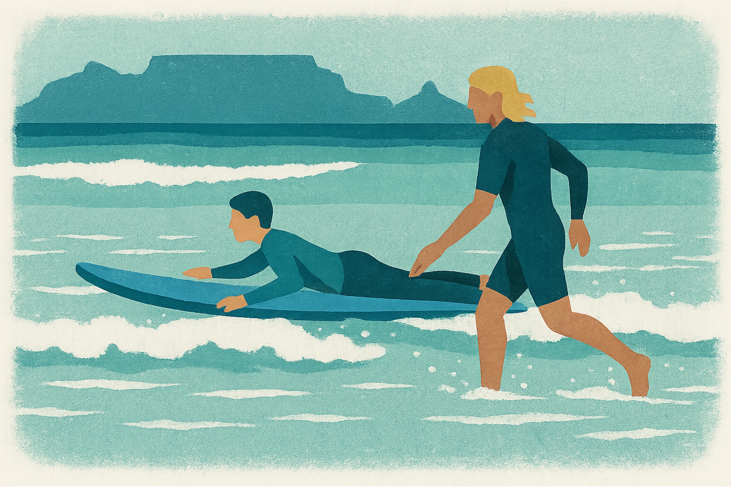 Learn to surf at the iconic Big Bay Beach, situated along the beautiful West Coast of Cape Town South Africa, with highly experienced and trained professional surf coaches with years of experience. All equipment is the highest of quality and provided for your 90 minute surf session.